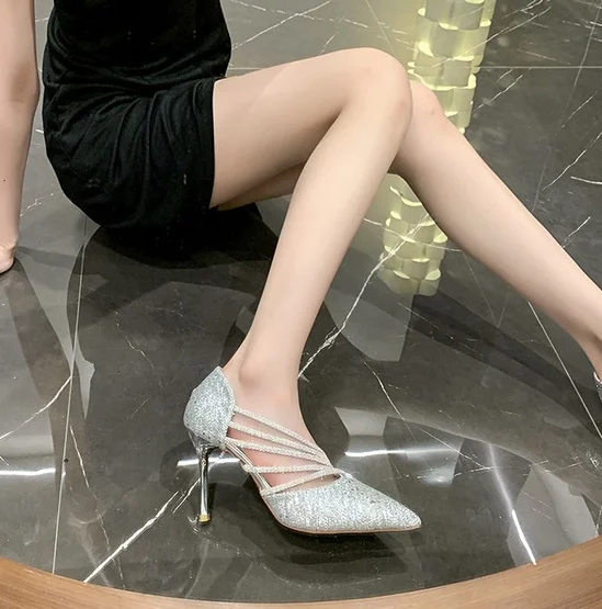 Women's Luxury Party Sandals Diamond Pumps Summer Fashion Trend Pointed Toe Lightweight Stiletto Heels Waterproof Button